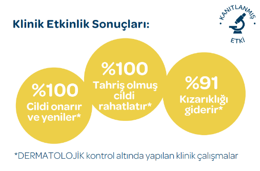 Döküntülerde 2. günden itibaren, cilt kuruluğunda ise 1. günden itibaren belirgin onarıcı etki sunar.