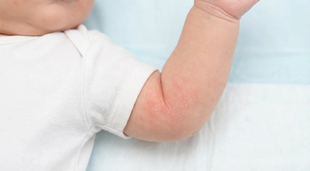 - Özellikle yanak, alın, dirsek içi ve diz arkalarında kızarıklık ve döküntü