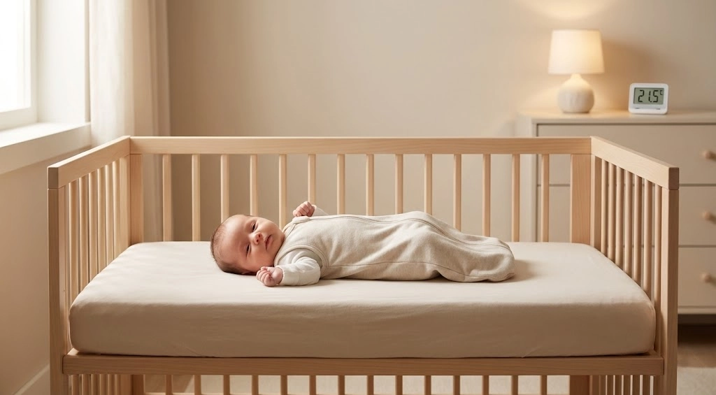 Bebek yatağı sert ve düz bir zemin olmalı, yastık, battaniye, peluş oyuncak gibi boğulma riski taşıyan nesneler kesinlikle yatakta bulundurulmamalıdır. Ayrıca oda sıcaklığı 20–22°C arasında tutulmalı ve bebeğin çok kalın ya da çok ince giydirilmemesine dikkat edilmelidir. Uyurken başının üstü örtülmemeli, bebek terlememeli ya da üşümemelidir.