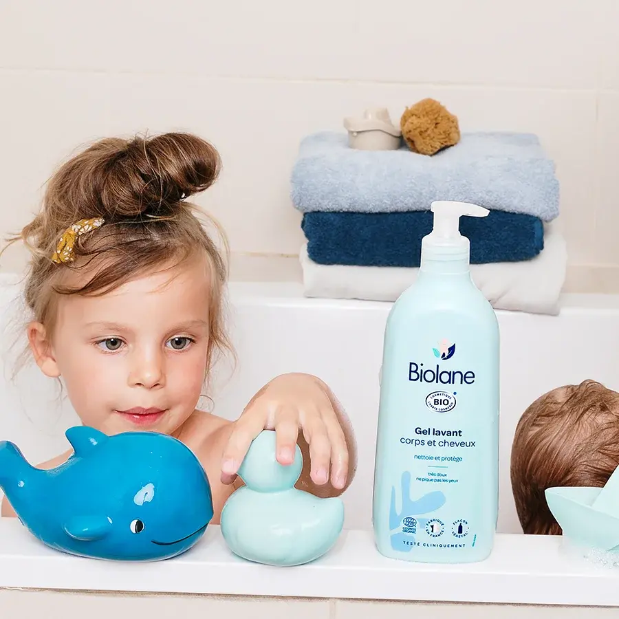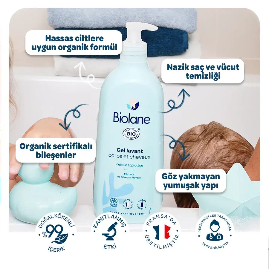 Organik sertifikalı bu Biolane vücut ve saç yıkama jeli bebeğinizin hassas cildi için idealdir.