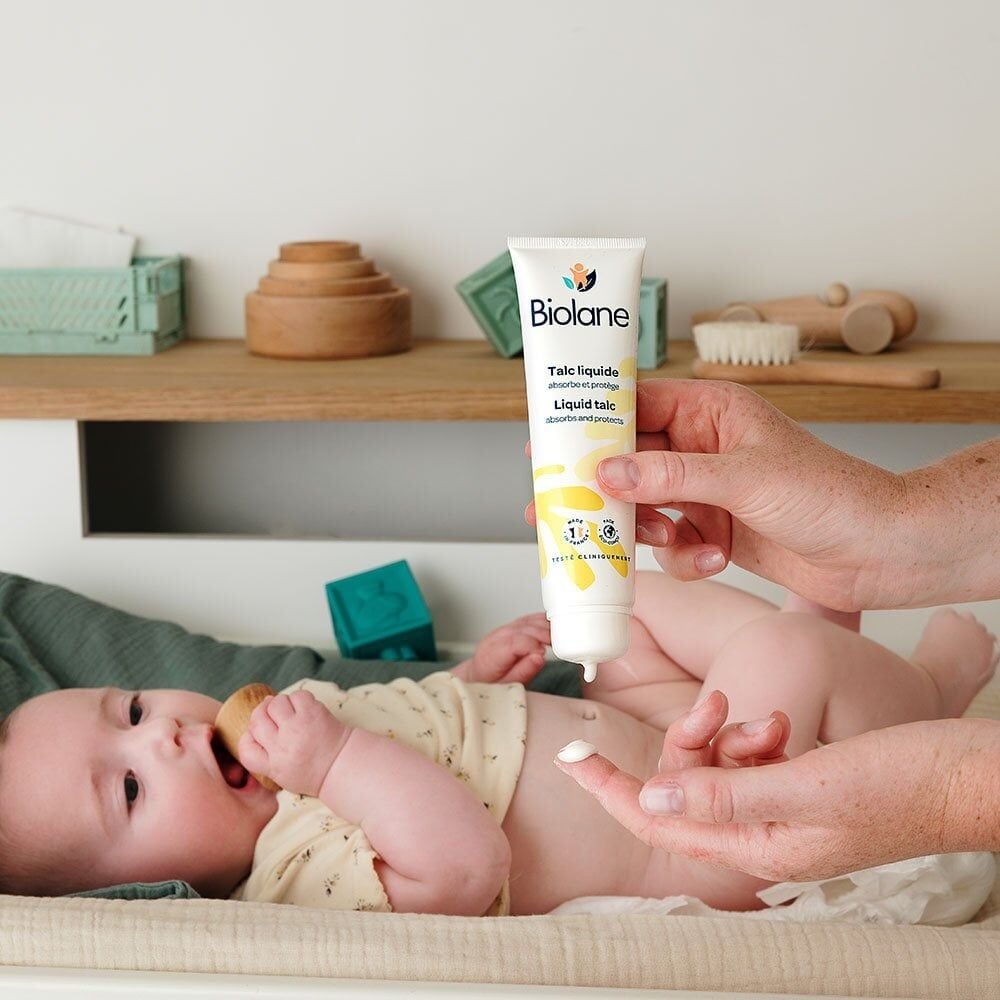 Ciltte tahrişe neden olan aşırı nemi emmesi için yumuşak dermofil mineral tozlarından yapılmış Biolane Sıvı Pudra aynı zamanda da deriyi yatıştırma özelliğiyle bilinen pantenol içerir ve kızarıklıkla pişik oluşumunu engeller.