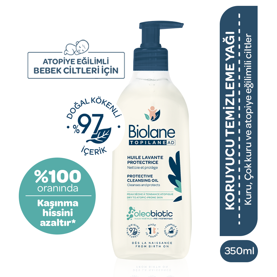 Atopik Kuru ve Çok Kuru Cilt için %97 Doğal İçerikli Temizleyici Yağ (350ml) - Onarıcı ve Koruyucu