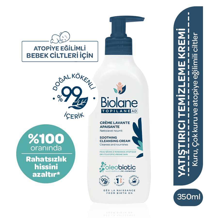 Atopik Kuru ve Kuru Cilt için %99 Doğal İçerikli Onarıcı Yatıştırıcı Temizleyici Krem (350ml)